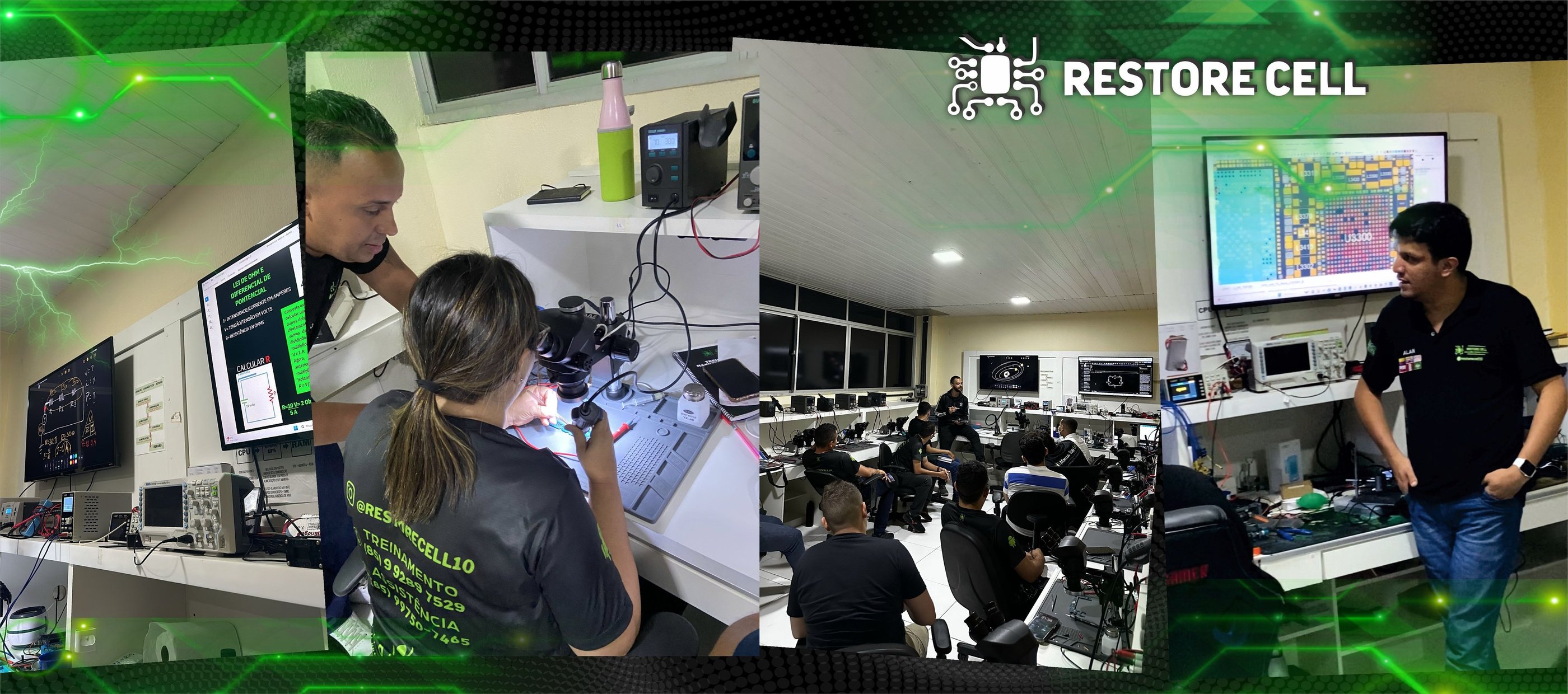 A RESTORECELL é líder em manutenção de celulares e oferece um dos melhores cursos de reparo de celular em Fortaleza. Nossa estrutura conta com bancadas premium equipadas com tecnologia avançada, proporcionando um aprendizado 100% prático e profissional.